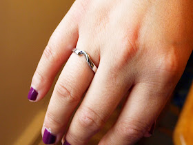 Now, after about a month of use, I have my ring!  The soap itself isn't gone, but it started to show the crack down the middle where the two halves were put together, so I pried it open to get my ring.  It was wrapped in a plastic bag, so none of the soap was on the actual ring.  I'm so happy with the design--I love simple jewelry, so the ring I got fits my style 100%!  To learn more about Soap Diamond, check out my original review here.